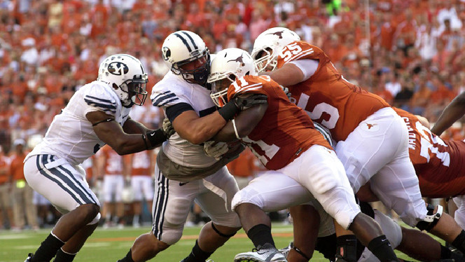 1. Go Fast vs. Go Hard. Texas, like the Cougars, has adopted an up-tempo scheme, and that should play to BYU's advantage. The Cougars' defense has been stellar for the past few years, and they have been practicing against an up tempo offense all off-season. I suspect that BYU's defense will be much better prepared for the fast pace, both in strategy and conditioning. Let's also not forget about the altitude and how that will affect a visiting team's ability to run a lot of plays.